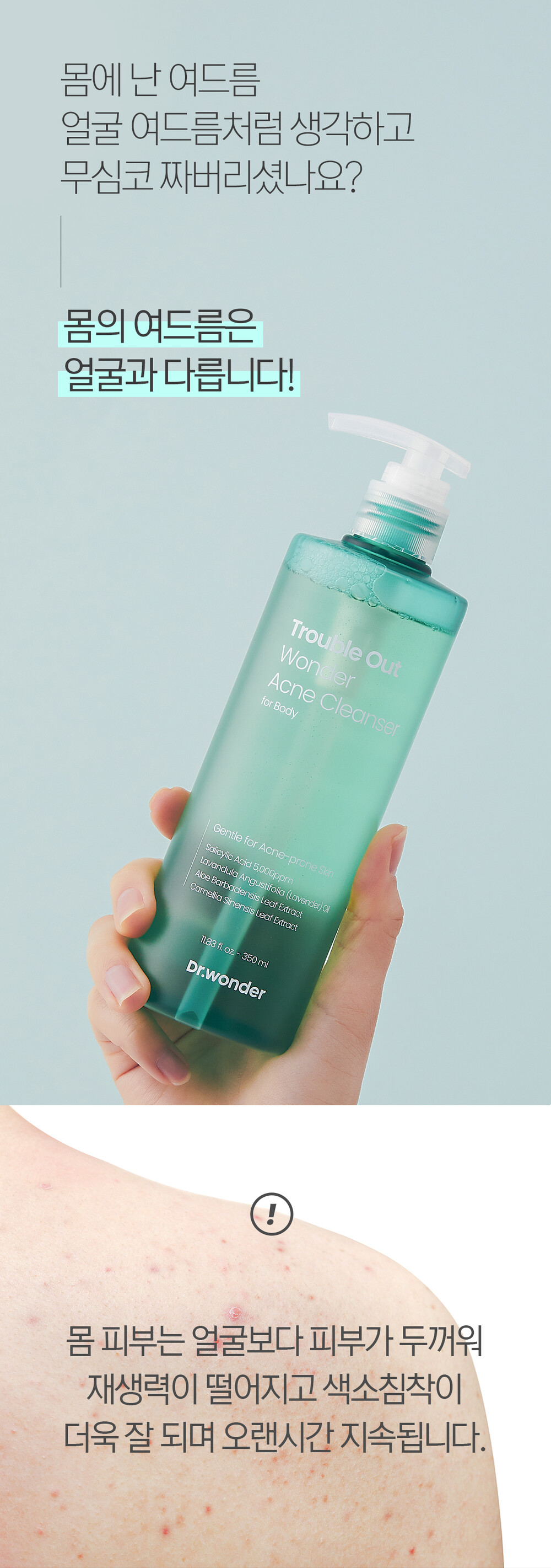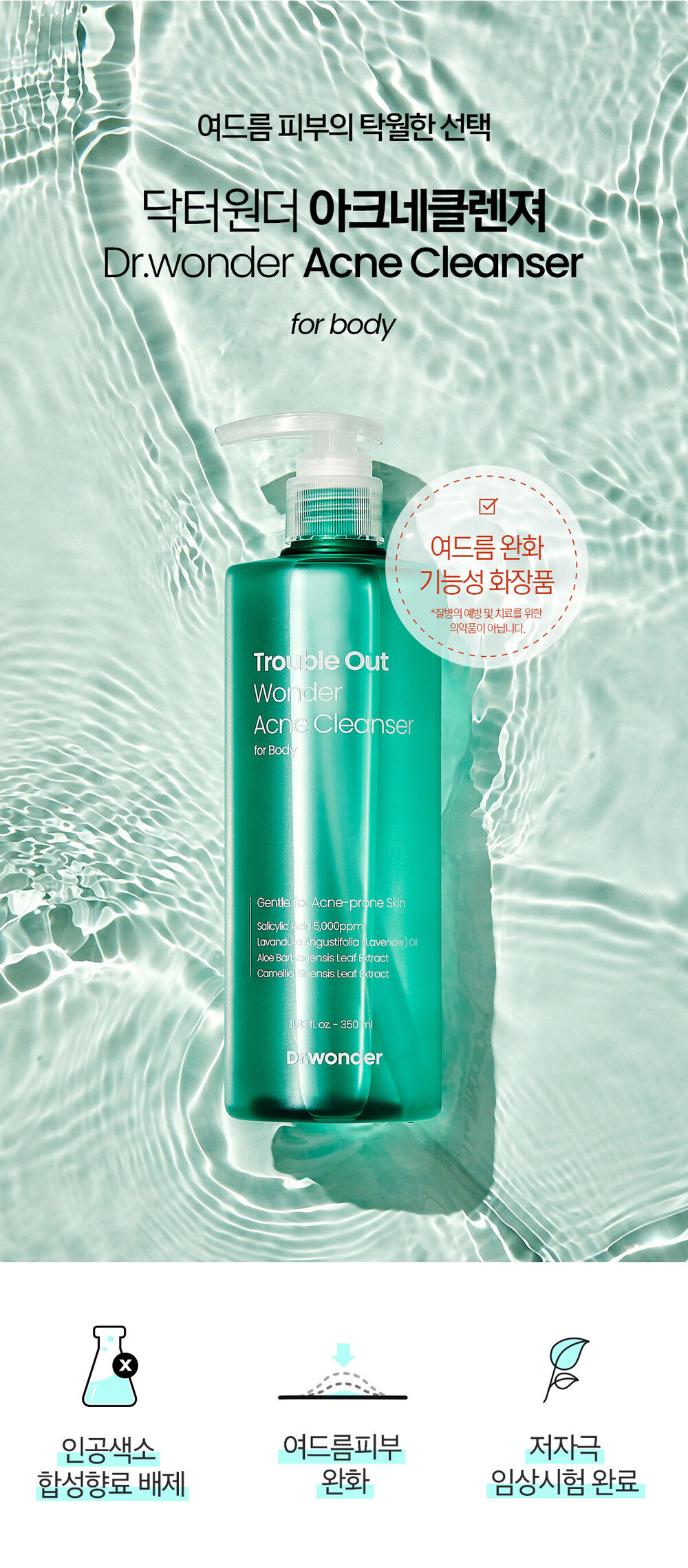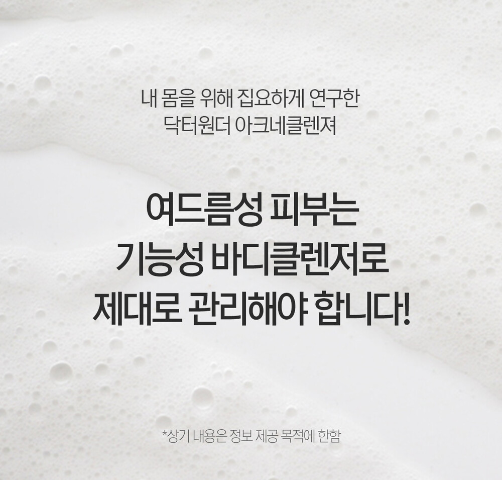 여드름 피부의 탁월한 선택! 아크네 바디클렌저는 여드름 완화 기능성 화장품입니다.
