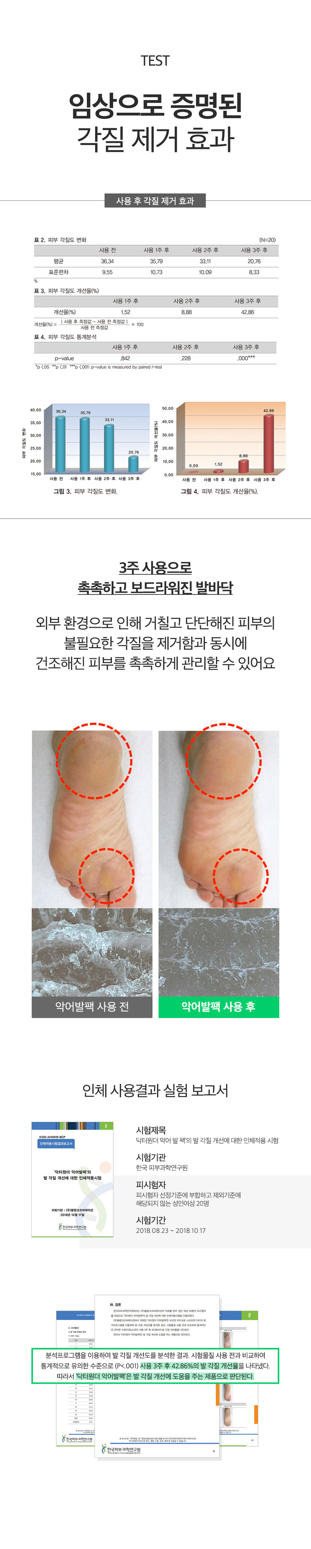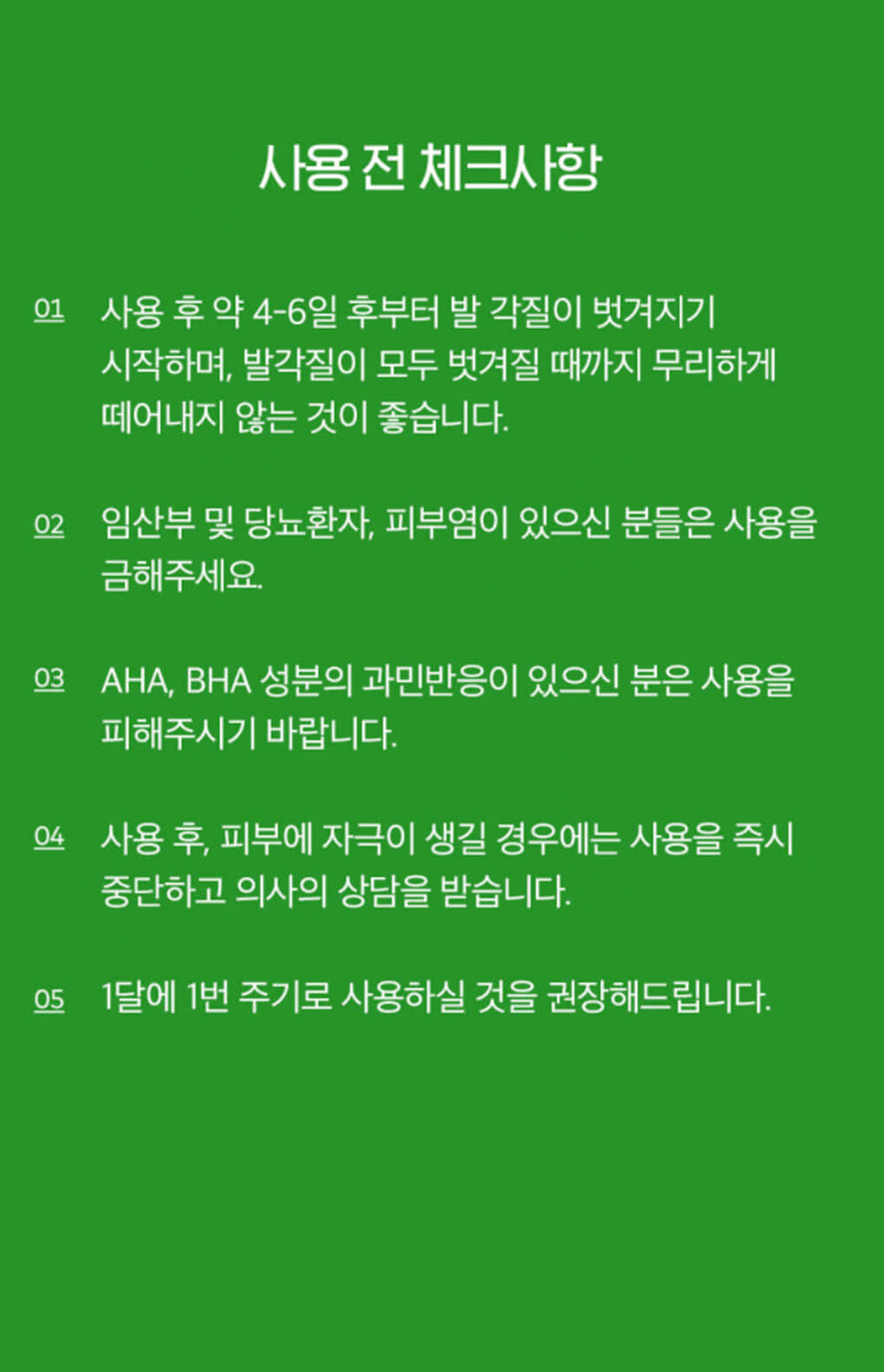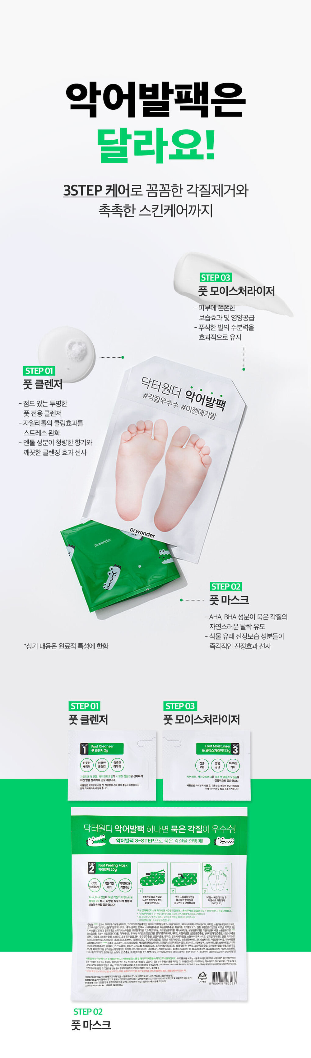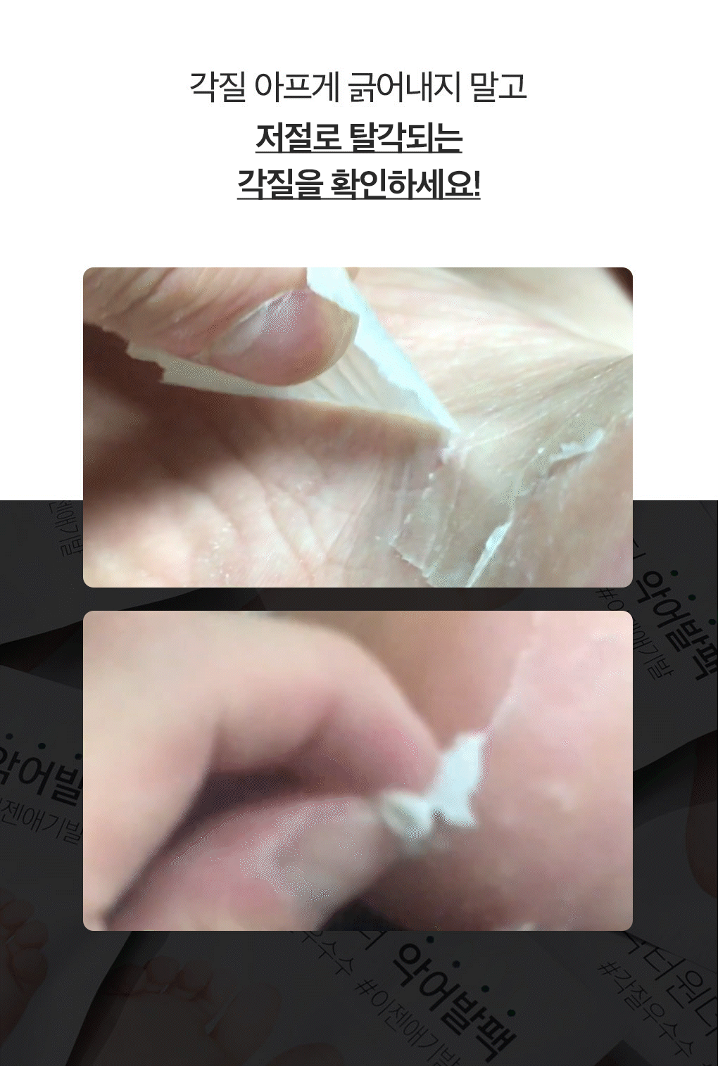 악어발팩은 3 step 케어로 꼼꼼한 각질제거와 촉촉한 스킨케어가 가능합니다. 외부환경으로 인해 거칠고 단단해진 피부의 불필요한 각질을 제거함과 동시에 건조해진 피부를 촉촉하게 관리할 수 있습니다.