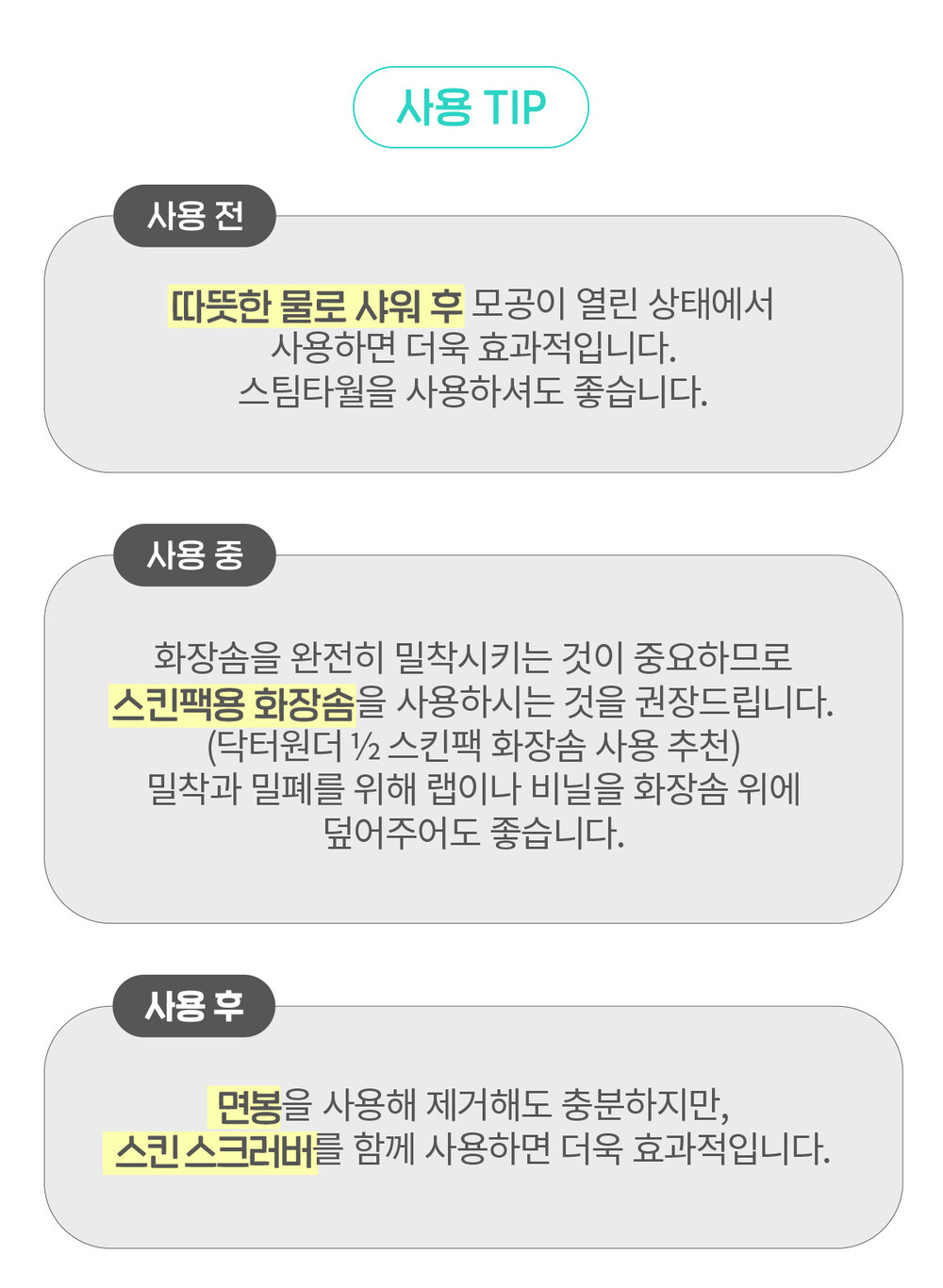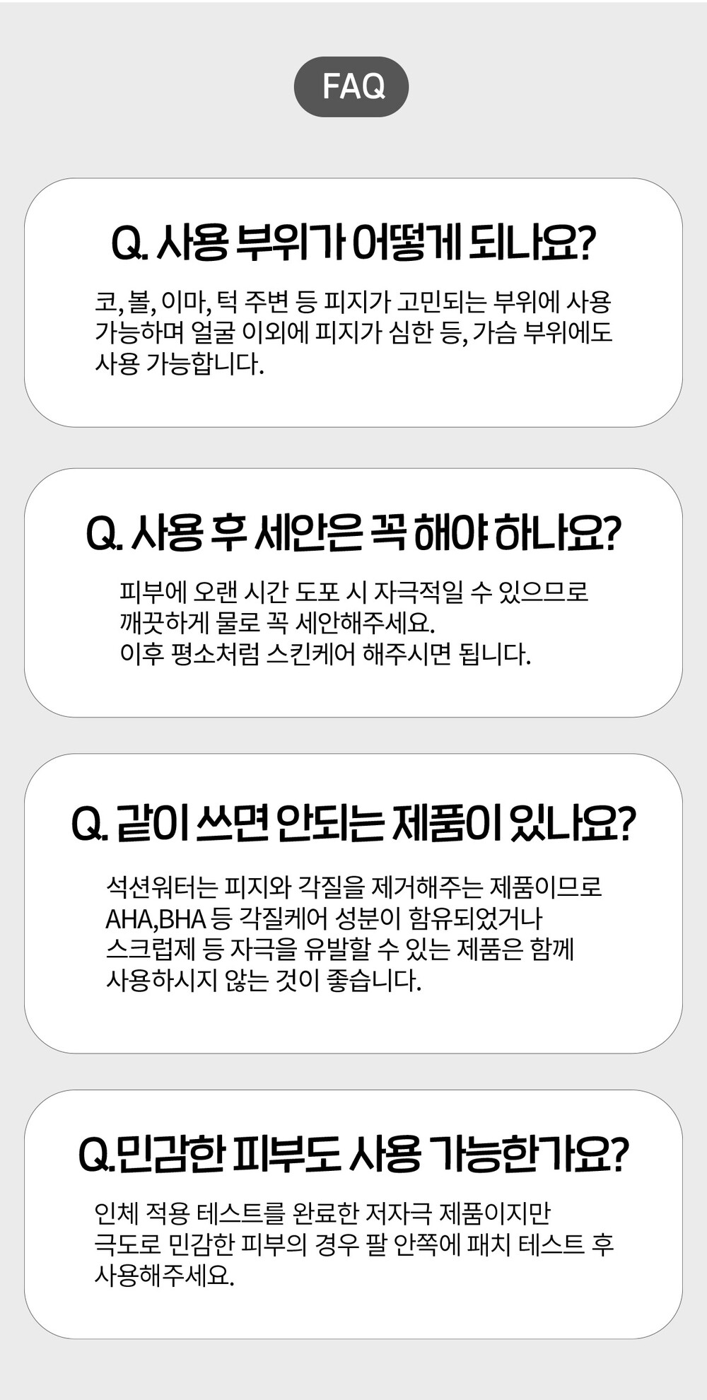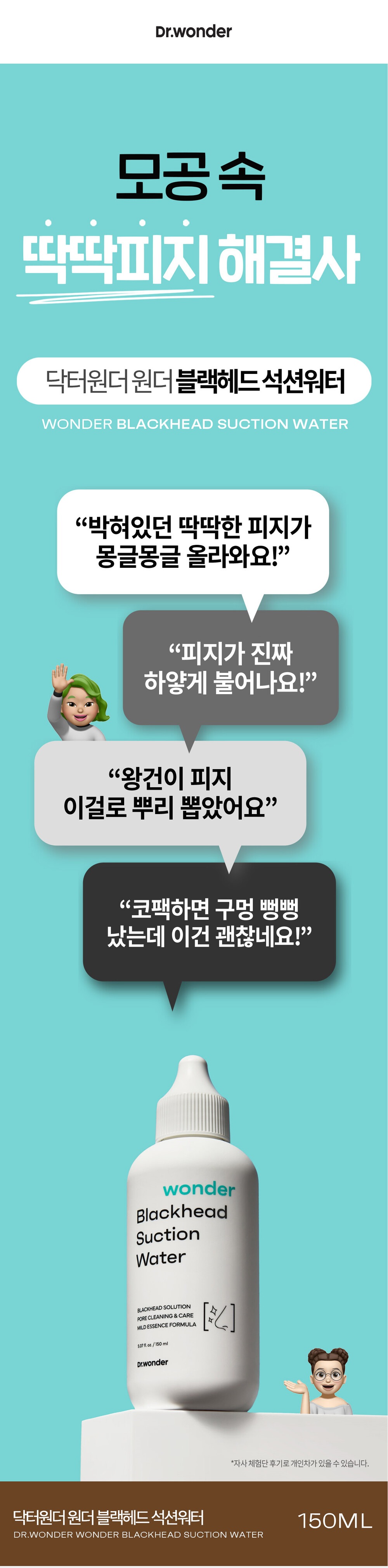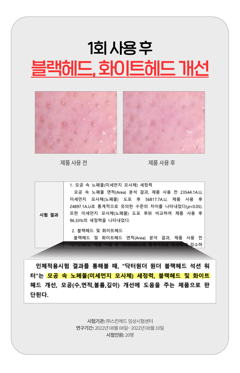 블랙헤드 석션워터는 단 1회 사용으로도 피지를 불려 스스로 나오게 하는 신개념 3세대 피지제거제입니다.