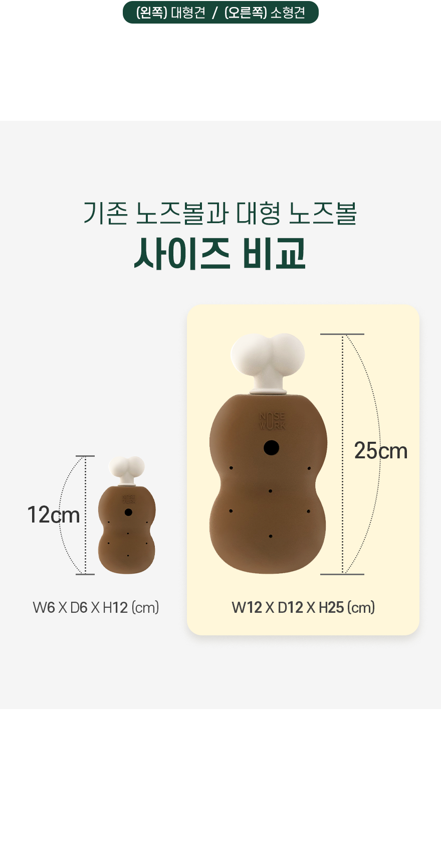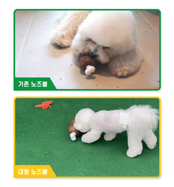 대형견용 노즈워크 노즈볼입니다. 기존의 노즈볼보다 3.5배 커진 노즈워크 장난감입니다. 아로마볼과 간식을 이용하여 반려동물들이 집에서도 효과적인 노즈워크 놀이를 할 수 있습니다.