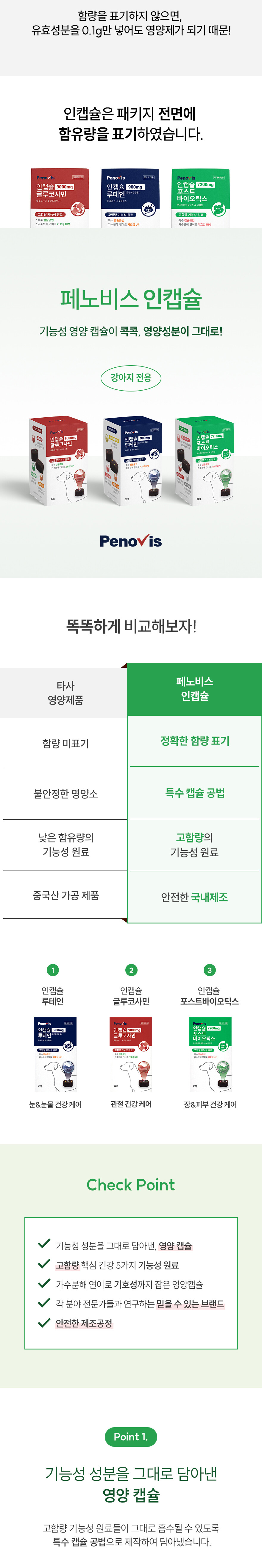 페노비스 인캡슐은 간식처럼 급여할수 있는 져키형 영양제로 가수분해 연어와 특수캡슐로 만들어진 반려견 전용 영양제입니다. 알레르기 걱정을 덜 수 있는 가수분해 연어를 사용하여 기호성이 높고, 장까지 영양성분을 옮겨주는 특수 캡슐로 반려견의 건강에 도움을 줄 수 있습니다.