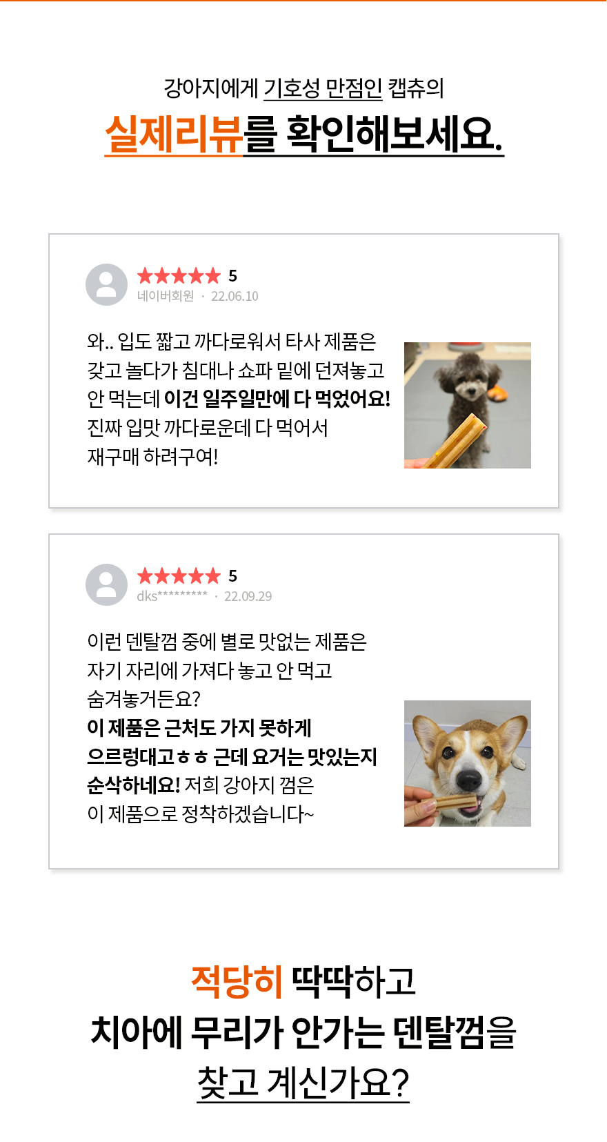 페노비스 캡츄는 가수분해 연어와 특수캡슐로 만들어진 껌 간식입니다. 알레르기 걱정을 덜 수 있는 가수분해 연어를 사용하여 기호성이 높고, 장까지 영양성분을 옮겨주는 특수 캡슐로 반려견의 건강에 도움을 줄 수 있습니다.