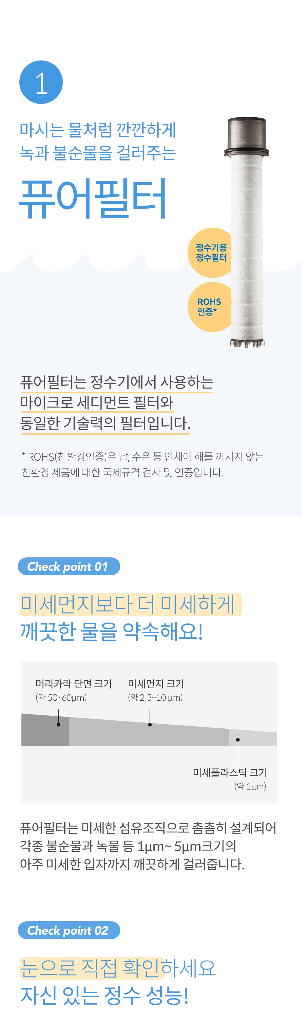 ① 마시는 물처럼 깐깐하게 녹과 불순물을 걸러주는 퓨어필터