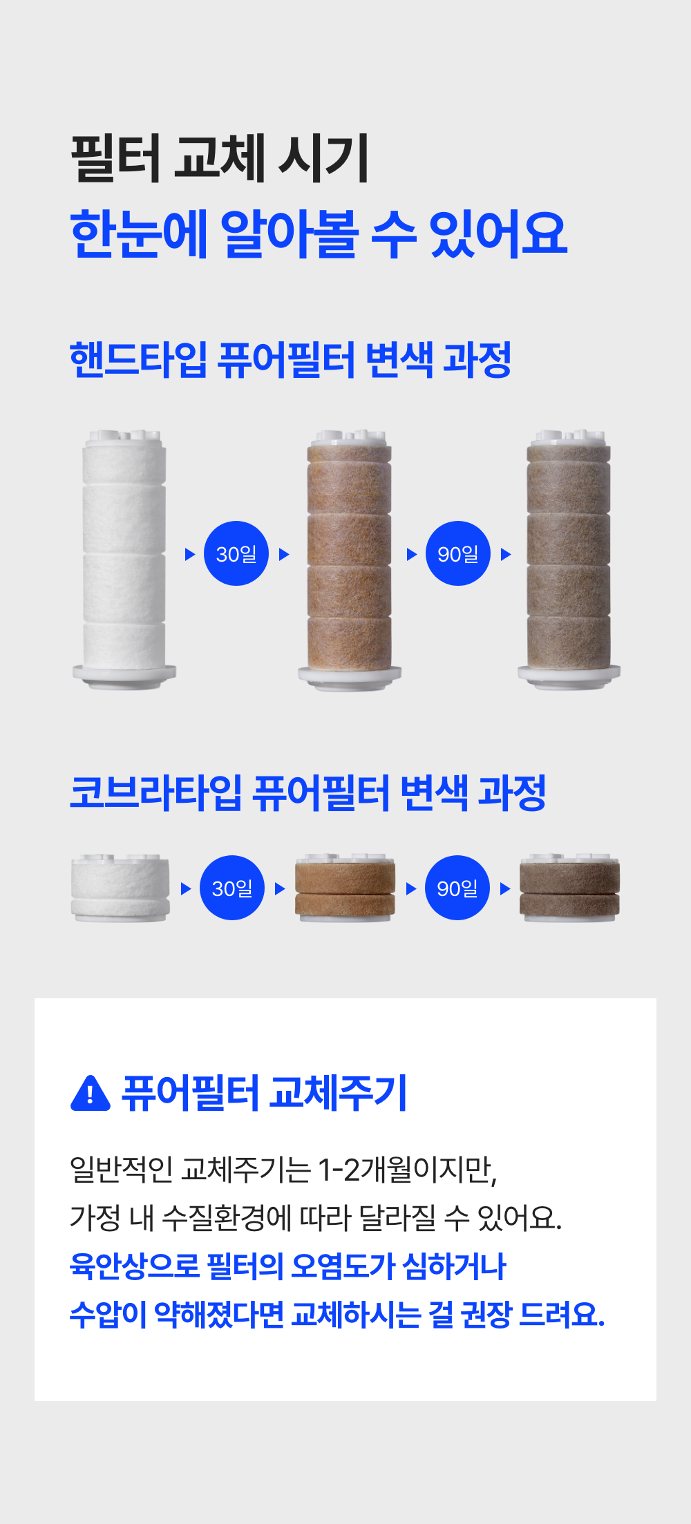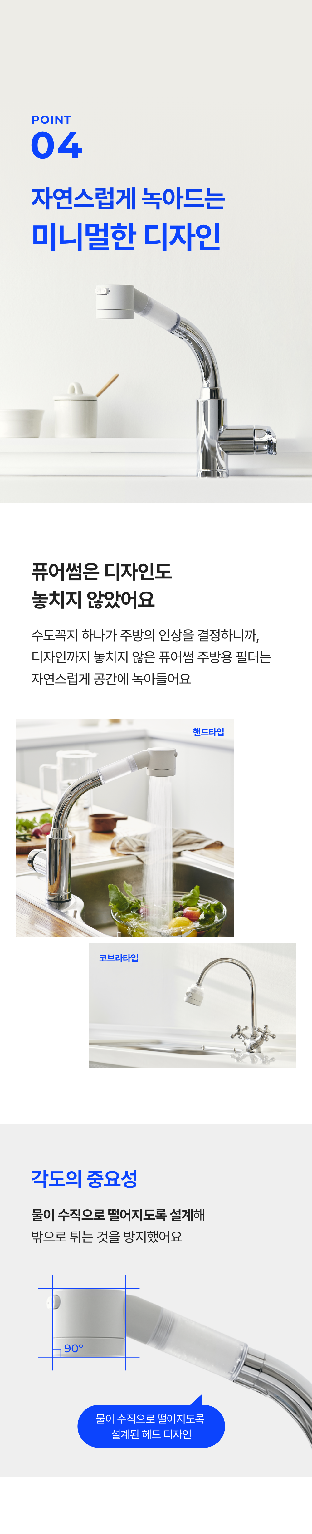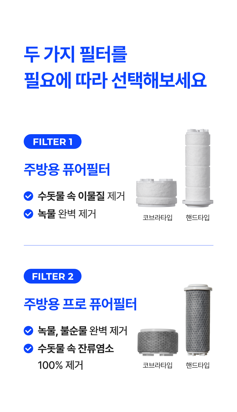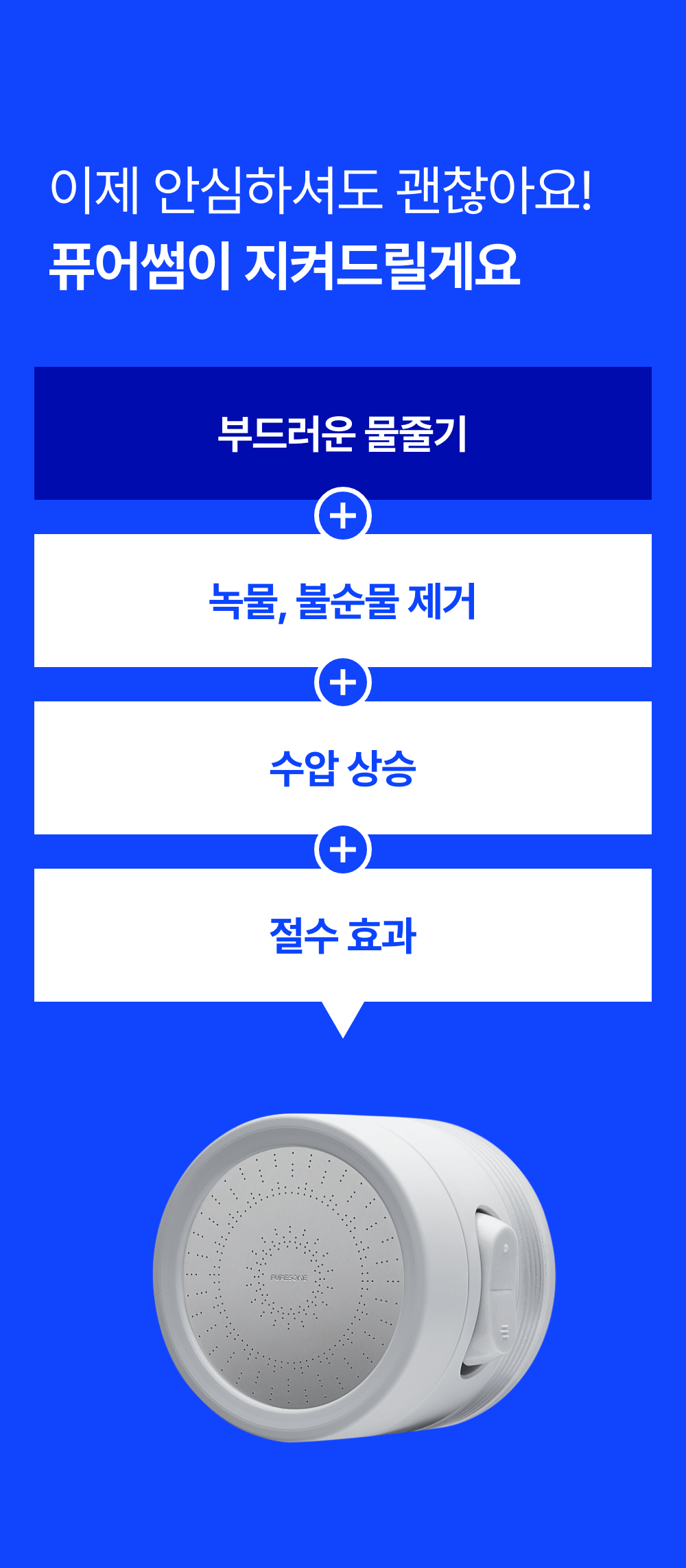 녹물, 불순물, 잔류염소까지 확실하게 제거해주는 퓨어썸 주방용 필터! 이제 주방에서도 안심하고 사용하세요.