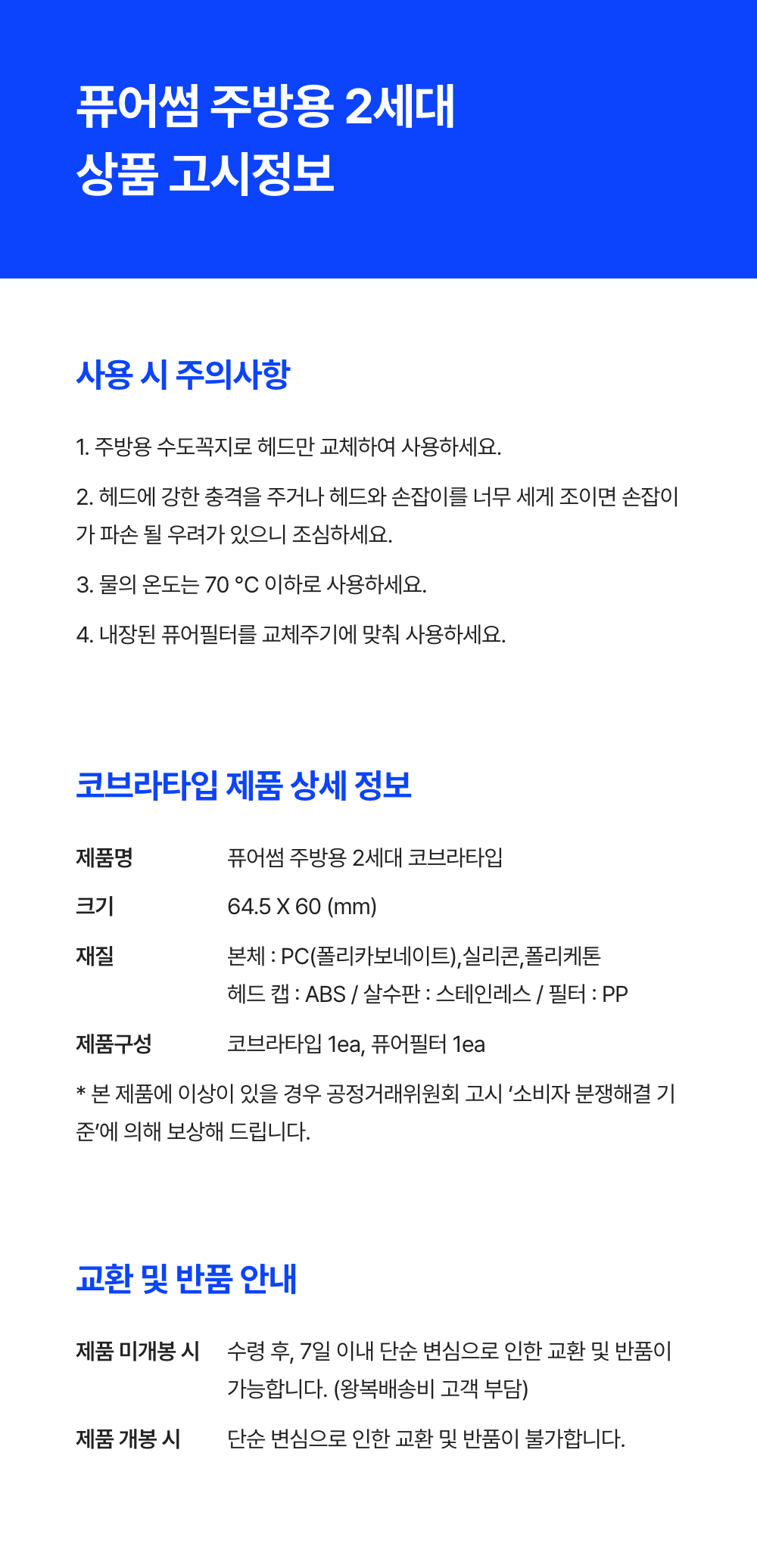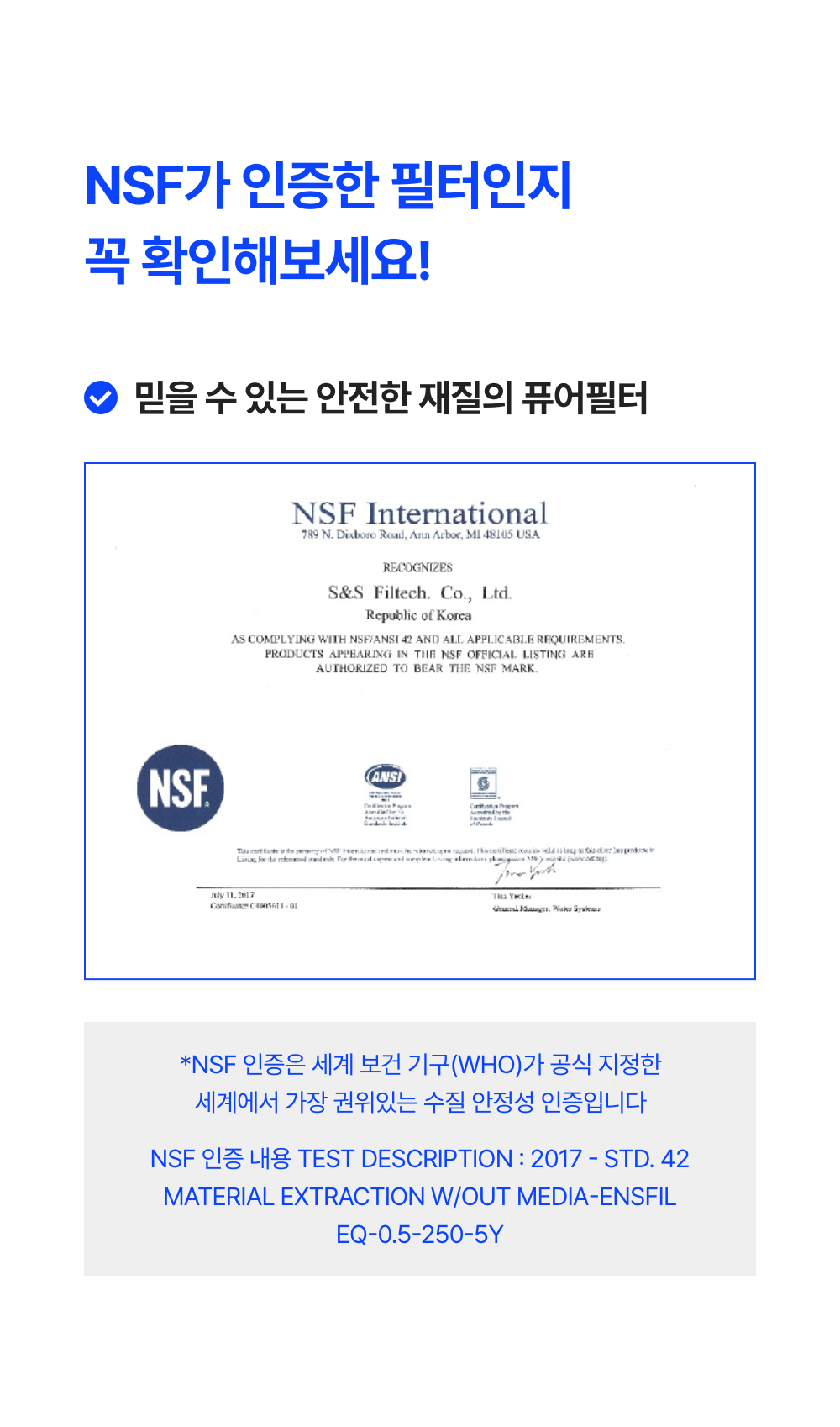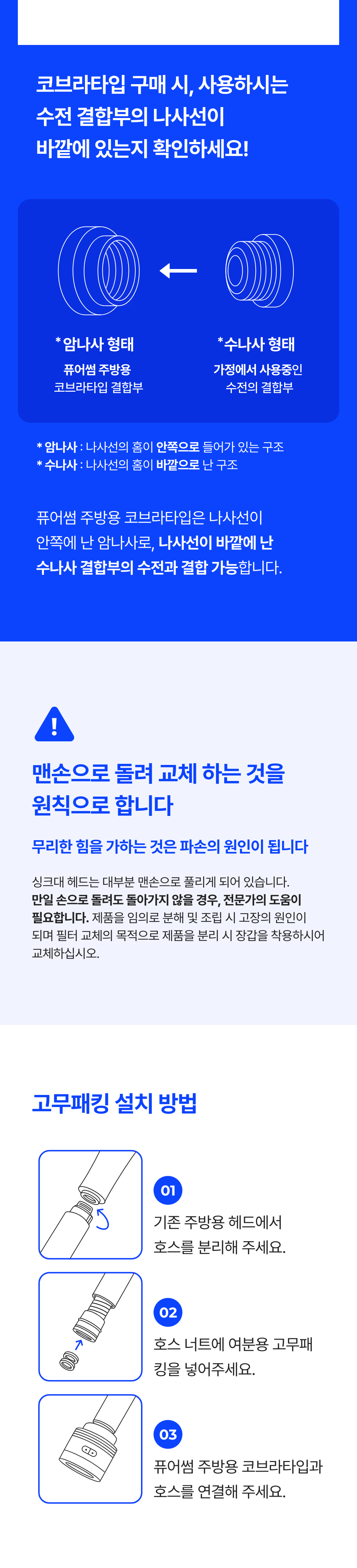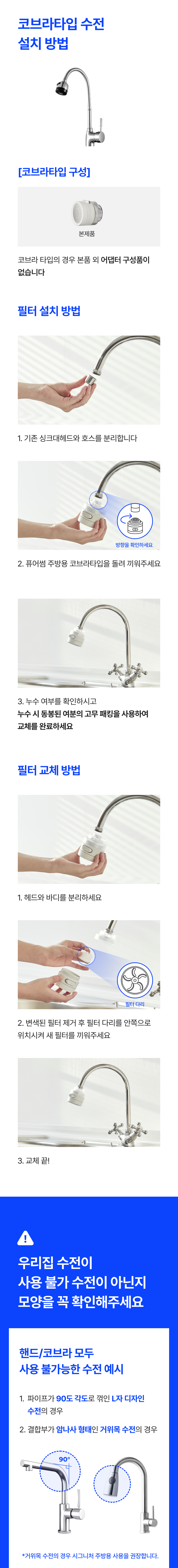 녹물, 불순물, 잔류염소까지 확실하게 제거해주는 퓨어썸 주방용 필터! 이제 주방에서도 안심하고 사용하세요.