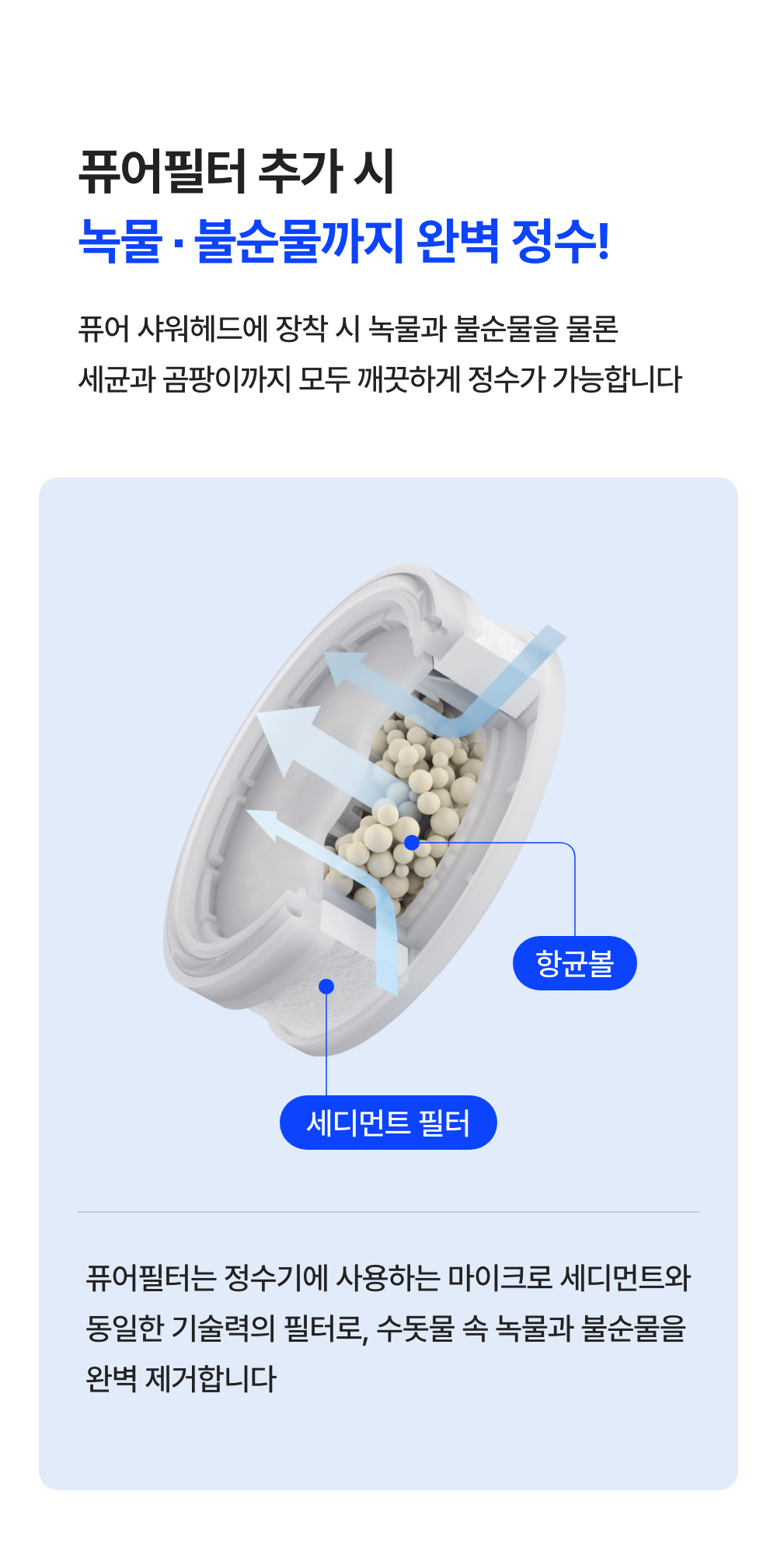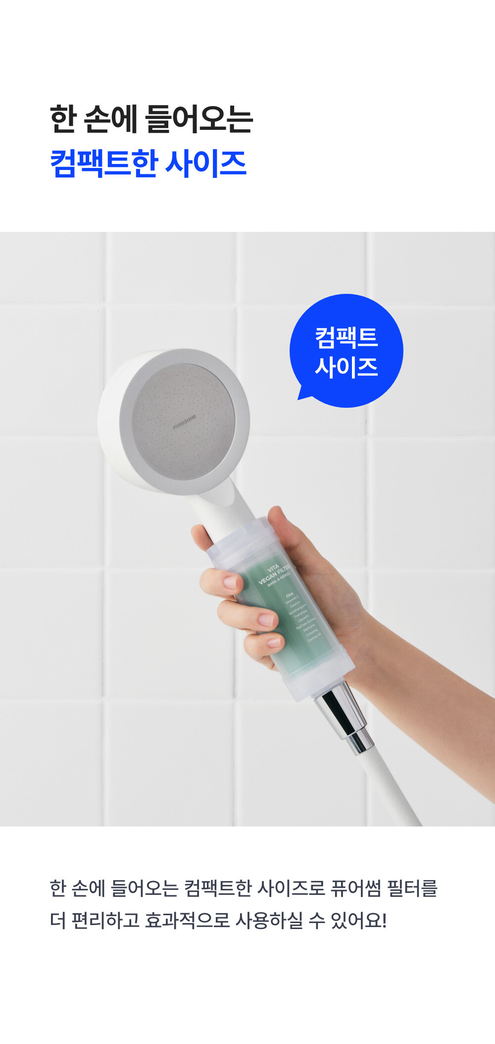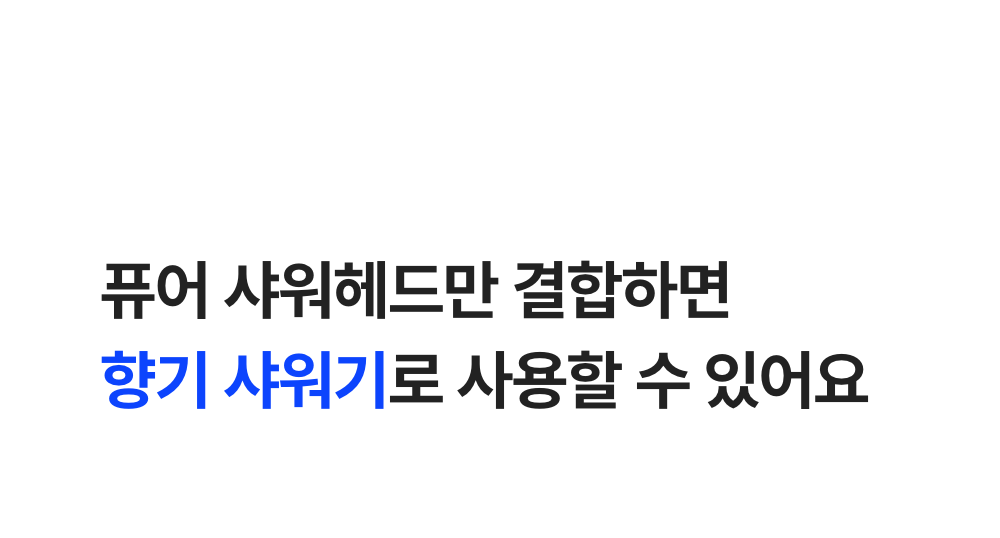 향기 샤워기의 완성! 퓨어썸 퓨어 샤워헤드는 비밀필터, 스파필터, 비건필터와 결합하여 더욱 향기롭고 깨끗하게 사용 가능합니다.